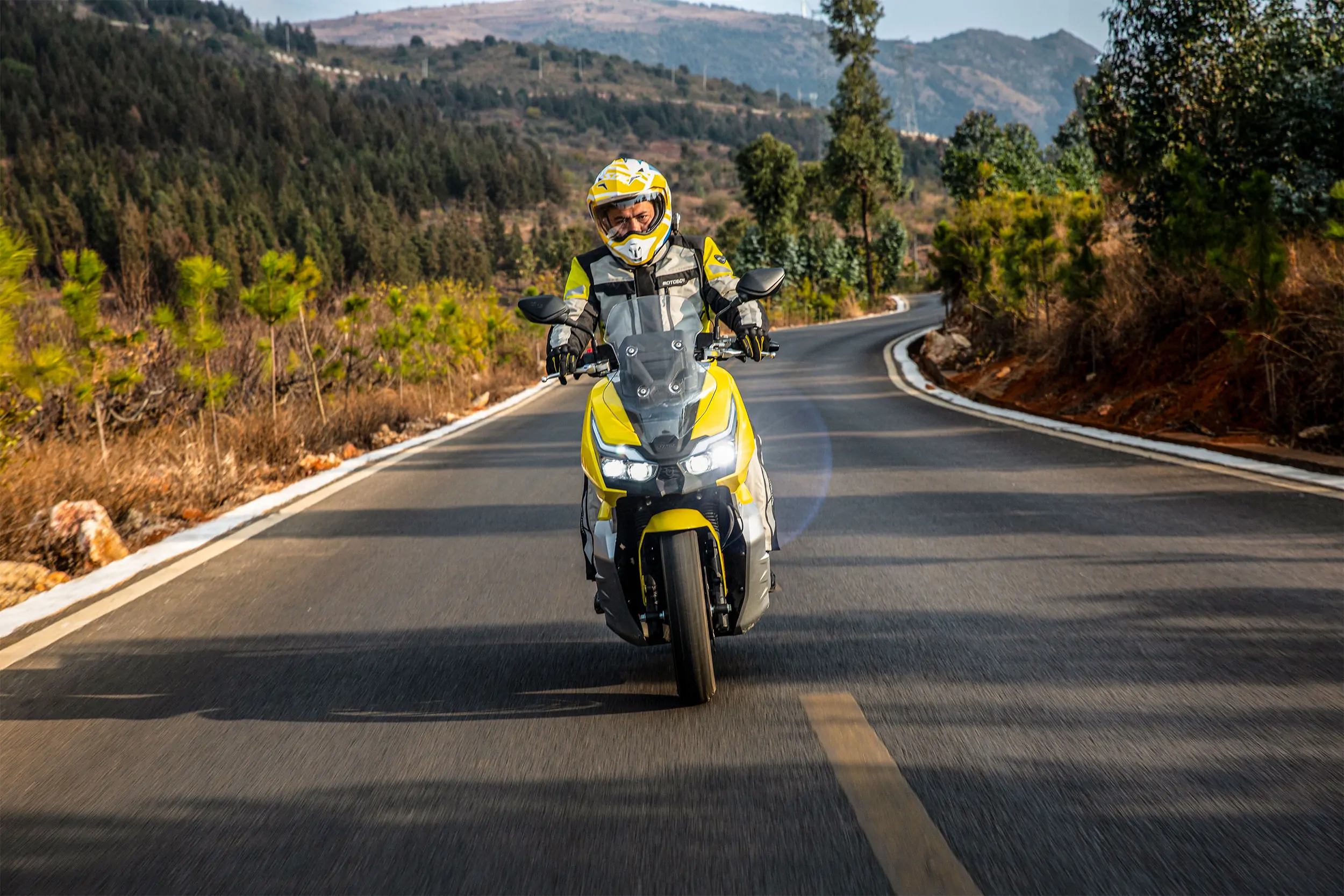 It is equipped with a 150CC water-cooled four-valve engine, which matches Bosch 8.0 electronic injection, adopts double high-position air intake, and uses imported parts such as DID chains, NOK oil seals, Bando belts, TPI bearings, etc. It can achieve a maximum power of 12.1kw/rpm and a maximum torque of 14.6N?m/rpm. The power is extraordinary, making every ride more confident.